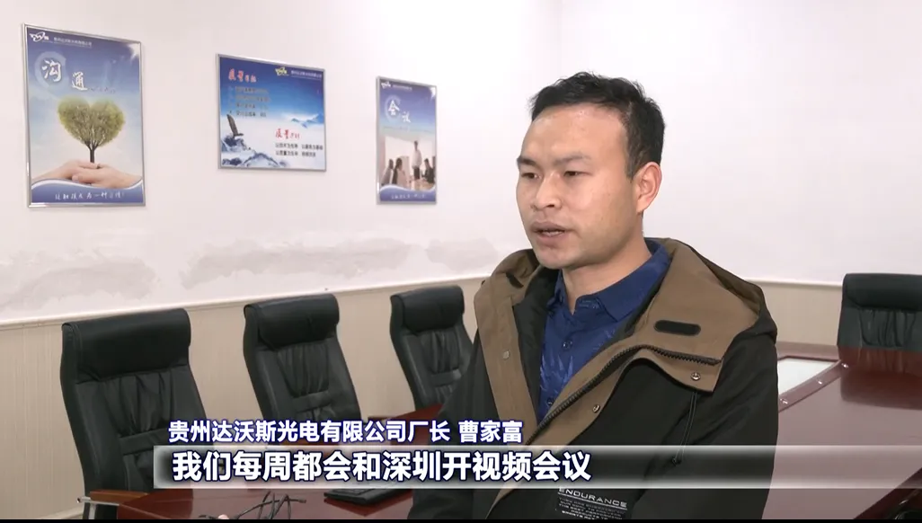 贵州达沃斯光电有限公司厂长 曹家富:我们每周都会和深圳公司开视频会,讨论研发、生产、销售方面的内容,解决生产过程中的问题,现在已经形成了“广东研发+贵州制造”的模式。