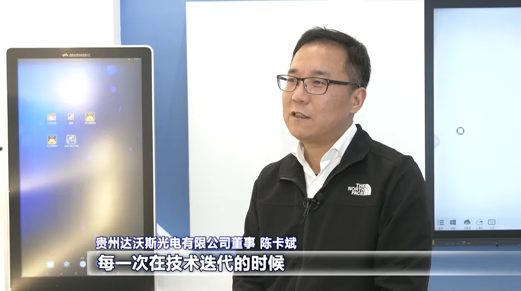 贵州达沃斯光电有限公司董事 陈卡斌:达沃斯从成立到现在,每一年都拿出营收的5%来作为研发的费用。达沃斯拥有12条产线,简单理解就是从一寸手表到大的会议室,中间所有的触控和显示达沃斯都能做。