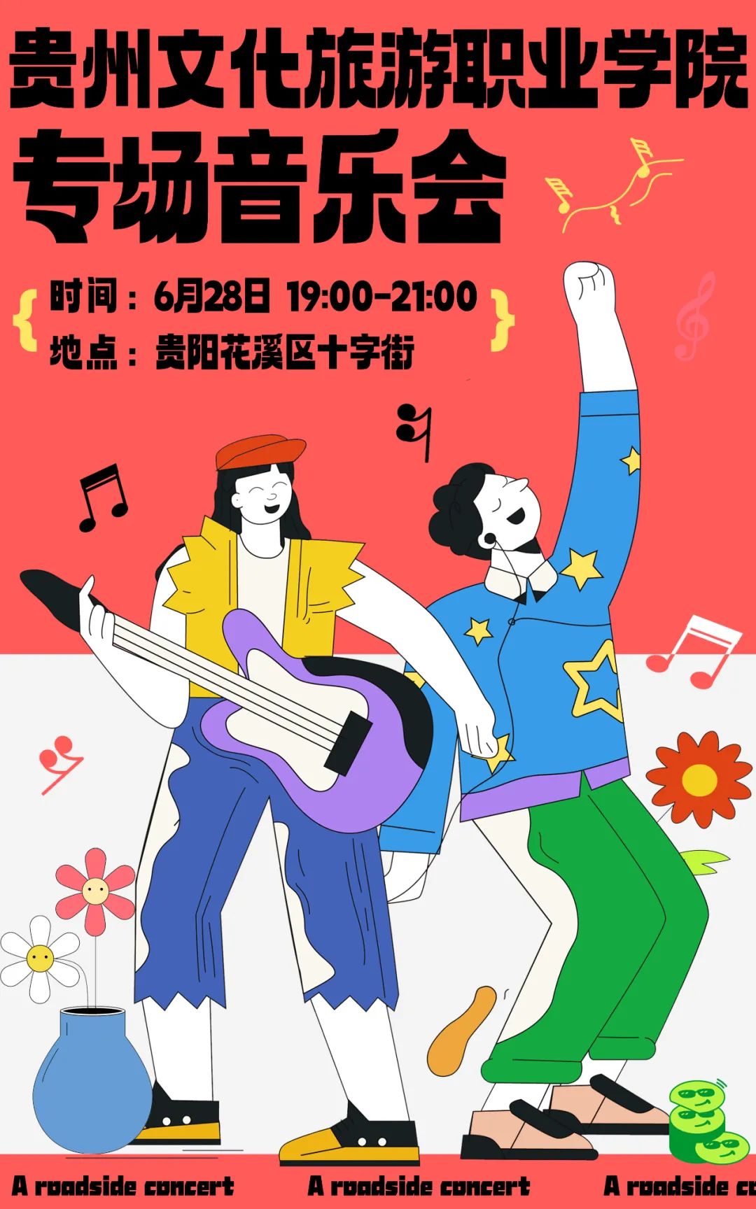 贵阳路边音乐会·十字街~高校专场,本周五晚贵州文化旅游职业学院专场音乐会,在旋律飘扬的氛围中燃情夏日,热爱继续~