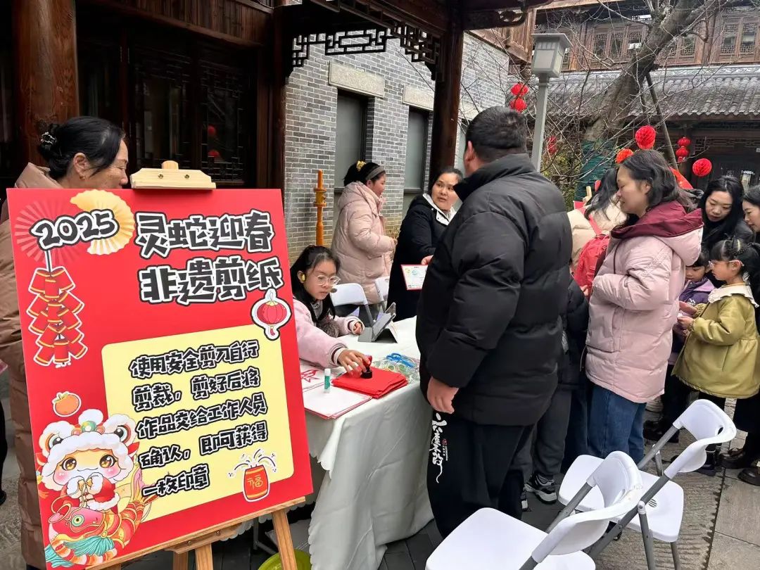 本次活动设置了6个互动体验环节,内容丰富多样。在“剪窗花・灵蛇迎春”区域,市民们手持剪刀,精心剪裁出带有春节祝福、生肖形象等元素的精美窗花,感受传统剪纸艺术的魅力;“捶丸挑战・蛇来运转”游戏区,大家积极参与,体验中国传统体育活动的乐趣,现场欢笑声不断;“知识问答・蛇我其谁”环节,围绕花溪区文化、历史和阅读的趣味问题激发了市民的参与热情,在欢乐中增长了知识;“趣味手绘·画蛇添福”环节为市民提供了创意发挥的空间,色彩斑斓的手绘画饱含着对新年的美好期许;“筷夹挑战・蛇拿九稳”游戏考验着大家的耐心与操作能力,成功完成挑战的市民收获了满满的成就感;“镜采新春・蛇影留痕”处,市民们用特色拍照框定格新春瞬间,并分享至朋友圈,传播活动的欢乐氛围。活动最后,市民们纷纷领取到了精美礼品并合影留念。