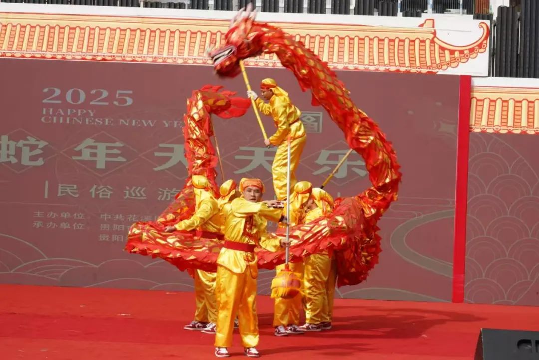 2月4日,农历正月初七,花溪十字街清华广场鼓乐喧天,人潮涌动,作为2025年花溪区“蛇年天天乐 民俗过大年”系列活动之一的“龙腾狮跃贺新春”舞龙舞狮比赛火热开赛,来自各乡(镇、街道)的8支舞狮队、9支舞龙队欢聚一堂,同台竞技,和众多市民群众一起共享龙狮运动带来的激情和快乐。