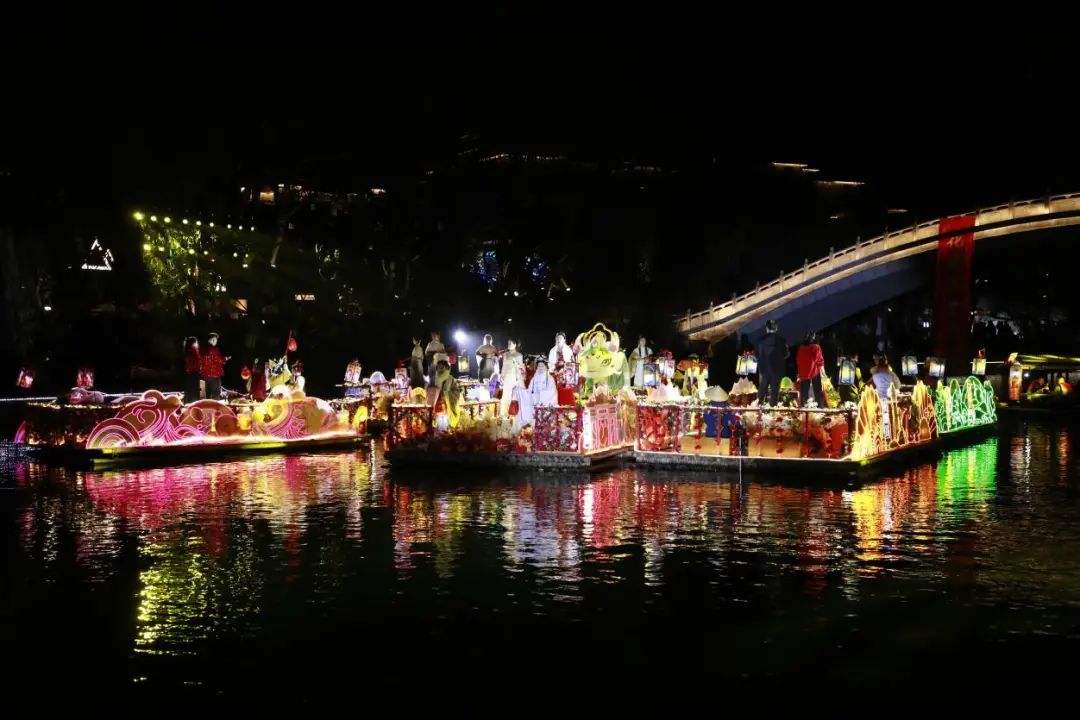 花溪公园开展非遗民俗展演、金蛇迎春灯谜会、“麟山祈福蛇山献瑞”、金蛇狂舞花船演艺、新春游园嘉年华,十字街“龙腾狮跃贺新春”“民族民间歌舞大联欢”“山歌对对碰”“花灯喜乐会”“民俗巡游龙狮闹春”“非遗过大年文化进万家”……一场场精彩绝伦不同风味的文化盛宴,充分展现了花溪区特色民间文化。