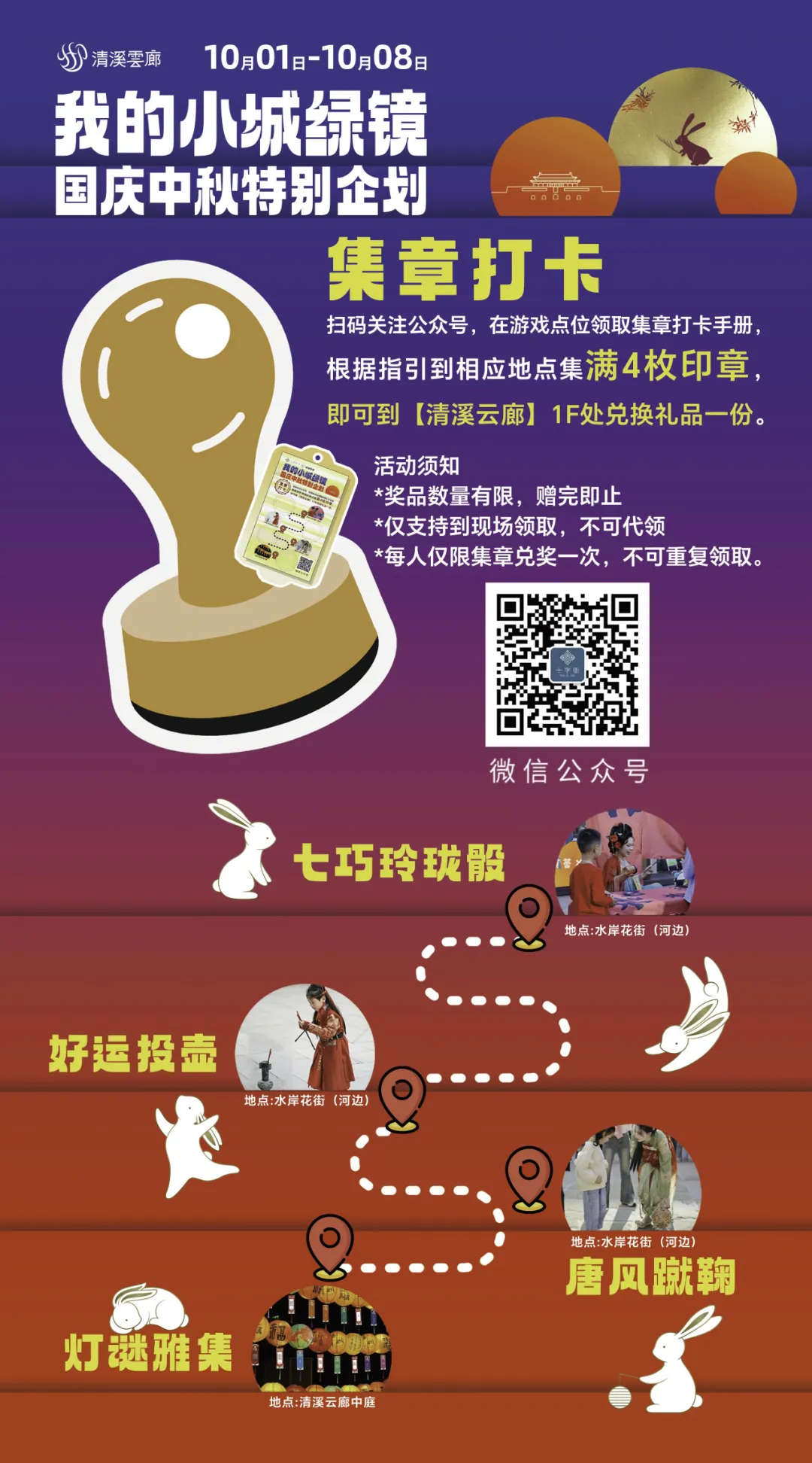 完成四个点位的游戏互动→到清溪云廊1F领取奖品