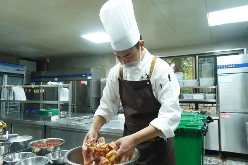 精选的花溪辣椒肉质厚实,味道鲜香,加上与生姜的“神仙比例”,打碎两次后形成了软糯极致的口感。现在,让我们走进棋亭文厨,在大厨的带领下一起感受这就是来自花溪土地的热辣美味。
