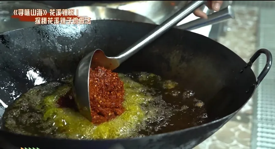 辣味“秘籍”:在油中下糍粑辣椒,小火炸至油色红亮,在这一步,提取出美食“灵魂”,辣椒与其他调味料一起,精炼出多重层次的香气。