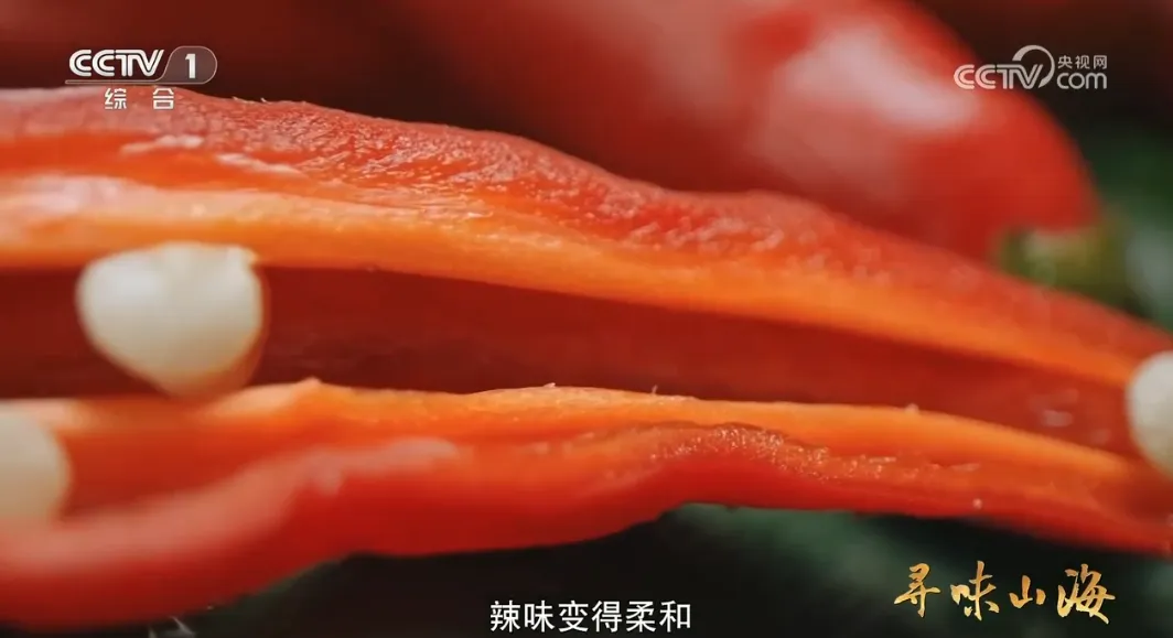 “贵州一怪,辣椒当菜”,花溪辣椒早已超越食材本身。在《寻味山海》的“山海餐桌”上,它以三种形态征服味蕾: