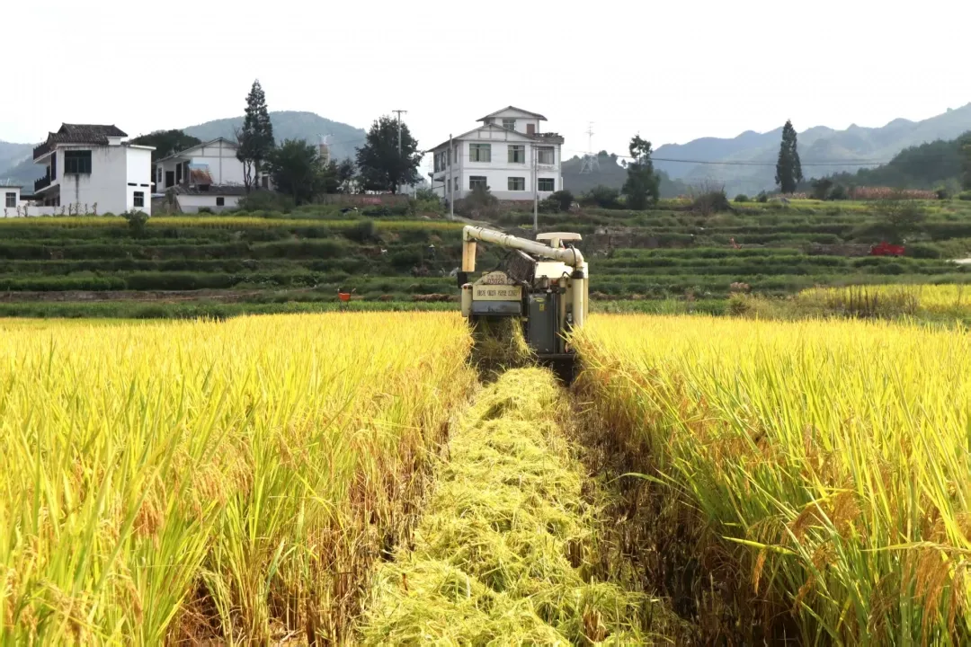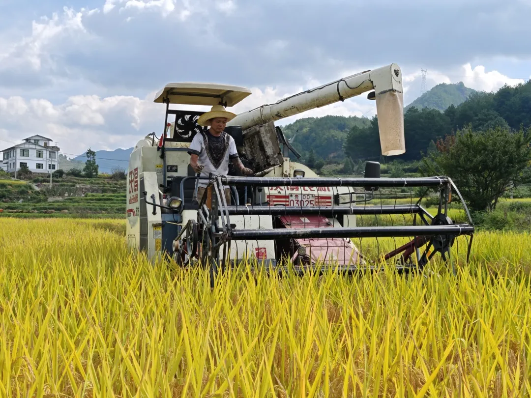 “突突突……”稻田里,一台大型联合收割机开足马力来回驰骋,割刀将饱满的稻穗齐根“吞”入,在机腹内完成脱粒、分离、清选,随即倾倒在农户准备好的运输车里。