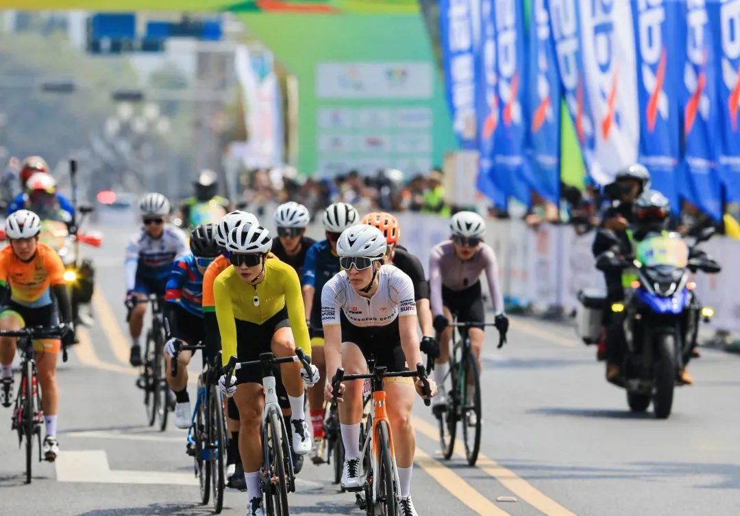7支女子职业车队、约40名巾帼车手飒爽而来。她们手握车把,身姿挺拔,臂章辉映拼搏意志。摩托车紧随其后,既是保障,亦为骑游组登场铺陈节奏。