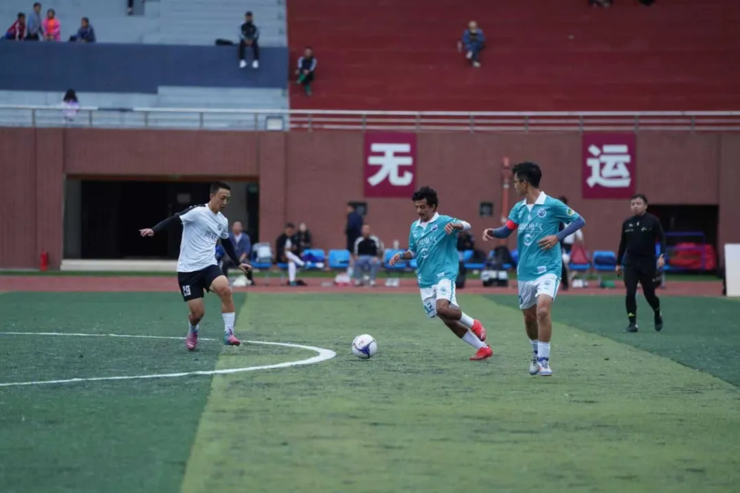 下午3时30分,随着球赛正式开球,赛场上,英姿飒爽的球员们你追我赶、奋力射门,大家娴熟的球技和顽强的拼搏精神吸引了观众的眼球,双方精彩进球瞬间赢得了全场的呐喊声和叫好声。