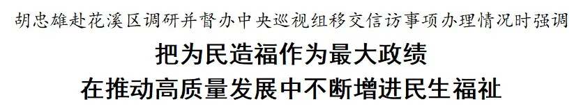 10月21日,省委常委、市委书记胡忠雄赴花溪区调研并督办中央巡视组移交信访事项办理情况。他强调,要深入学习贯彻习近平总书记在贵州考察时的重要讲话精神,把为民造福作为最大政绩,在推动高质量发展中不断增进民生福祉。