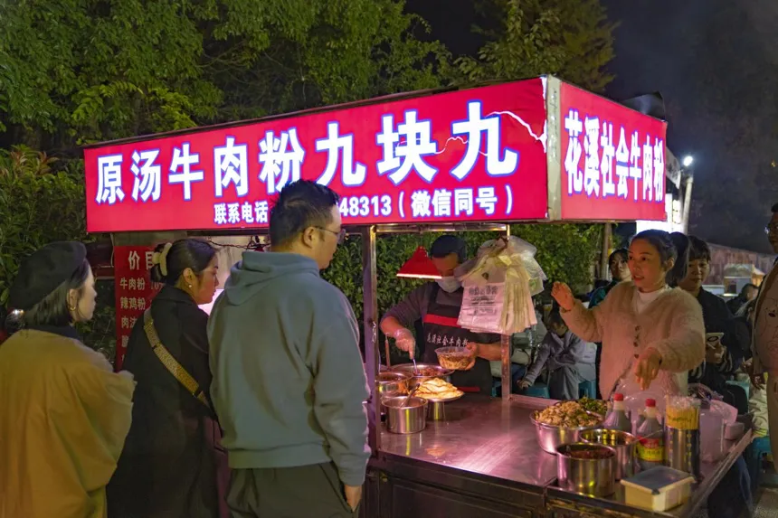 “为了吃到这碗粉,特别定了闹钟,卡着点来的。”一位排队的食客笑着说。这碗价格亲民,只需9.9元/碗的牛肉粉,不仅味道正宗,而且分量扎实,超高的性价比让该摊位在贵阳深夜美食圈迅速走红。
