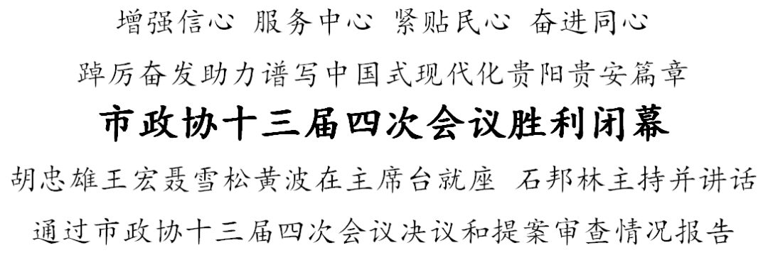 中国人民政治协商会议第十三届贵阳市委员会第四次会议圆满完成各项议程,于1月14日上午在贵阳胜利闭幕。