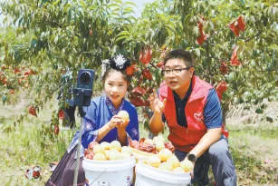 8月2日,在贵州施秉县马号镇平扒村黄桃种植基地,驻村第一书记帮助果农直播带货。 邰胜智 摄