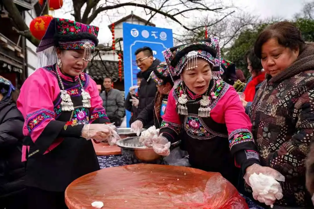 走过井口,沿着青石板路往村里走,香坊、银坊、蜡染坊次第排开。在龙井银坊里,女银匠张谨正指导学生锻打银饰。“熔银火候要够,塑形力度要轻”,她手把手纠正着学生的动作。工坊角落,几名德国学生正在认真记录银饰纹样的寓意。