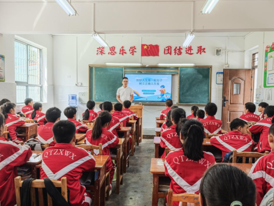 致天下之治者在人才,成天下之才者在教化。为深入学习贯彻党的二十大和二十届三中全会精神以及习近平总书记关于思想政治工作的重要论述,树立青少年正确的人生观,6月27日,黔陶乡党委书记刘友谊走进中心完小为同学们讲授思想政治课。