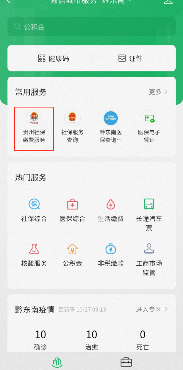 (一) 进入微信APP→点击“我”→“支付”→“城市服务”→五险一金的“社保”→“贵州社保缴费服务”,根据提示输入人员身份、险种、缴费金额等信息后完成支付。