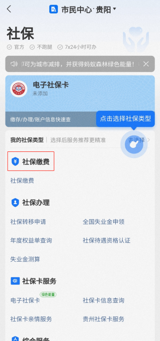 (二)进入支付宝APP→点击“城市服务”→“社保”→“社保缴费”,根据提示输入人员身份信息后,点击“查询缴费”,选择缴费险种、缴费金额等信息后完成支付。