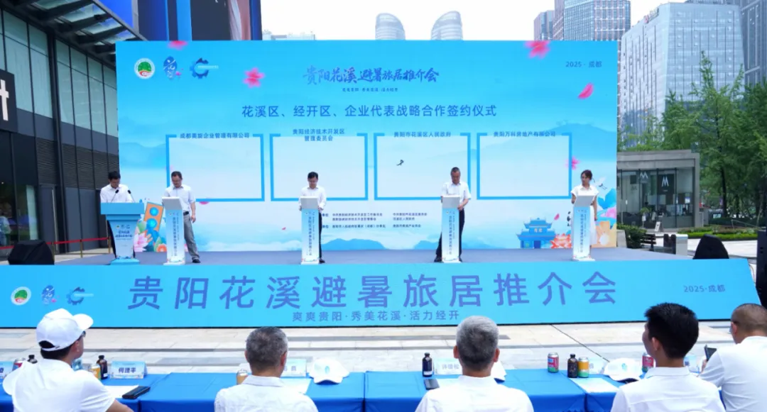 6月27日,“爽爽贵阳·秀美花溪·活力经开”避暑旅居产业推介会在成都悠方购物中心举行。