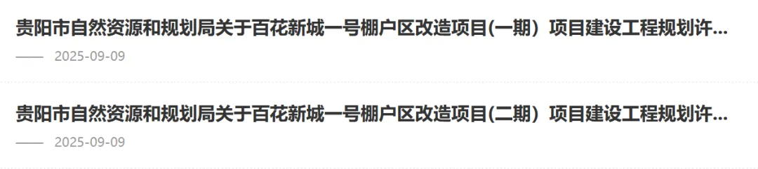 近日,贵阳市自然资源和规划局发布了关于百花新城一号棚户区改造项目(一期)、(二期)项目建设工程规划许可行政审批批前公示。