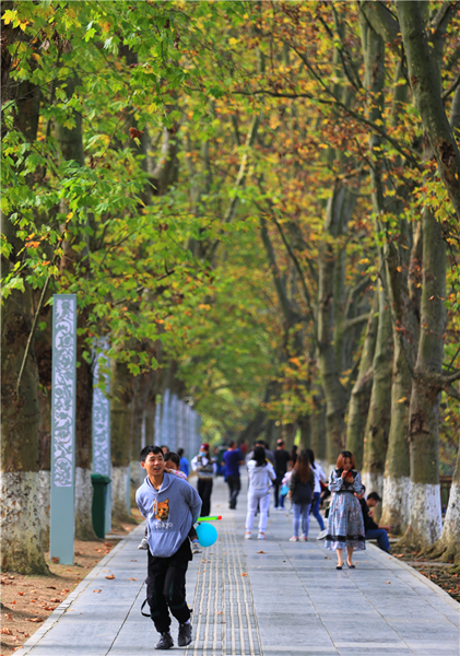 趁着这风和日丽,贵阳市民花溪河边晒暖阳