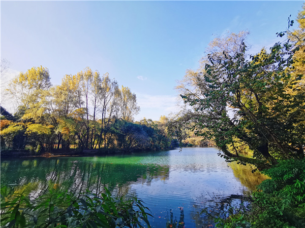 趁着这风和日丽,贵阳市民花溪河边晒暖阳