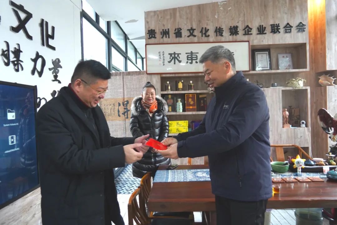在贵州宏遨文化传播有限公司,许俊松慰问了公司董事长李健铭,听取企业生产经营、影视剧创作等情况介绍,对企业近年来取得的成绩表示祝贺,希望他用好自身优势,发挥好示范带动作用,继续深耕创作,为花溪区文化事业高质量发展增添动力。