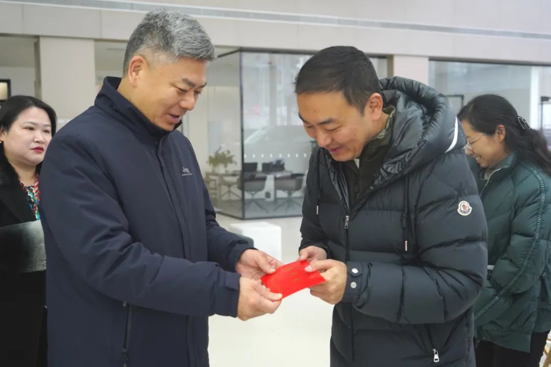 许俊松一行还来到贵州十和田实业发展有限公司看望慰问公司董事长朱恒锋。许俊松关切地询问企业生产经营情况,感谢企业为促进花溪经济发展作出的贡献,勉励企业在新的一年里进一步提振发展信心,抓好生产经营,把企业做大做强。