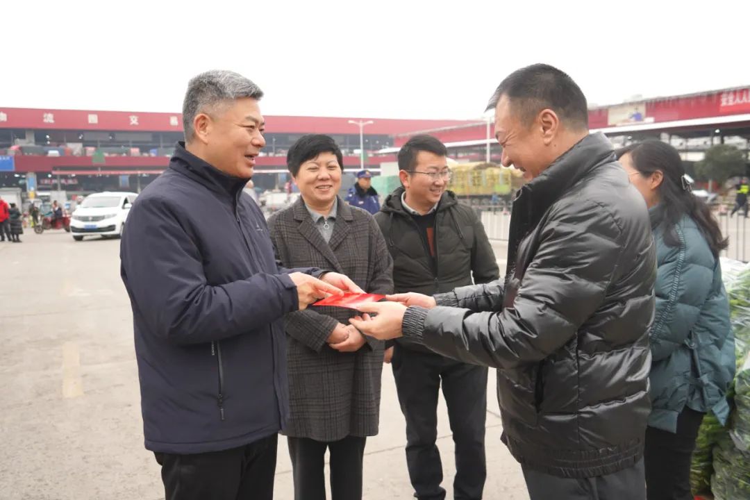 在贵阳地利农产品物流园有限公司,许俊松看望慰问了公司董事长宋海江,并深入交易大厅,现场了解物流园的货物进出、安全生产、商品价格等情况,希望地利物流园继续发挥好自身优势,积极拓展供应链业务,助力乡村振兴,在实现企业高质量发展的同时为民生保障做好服务。