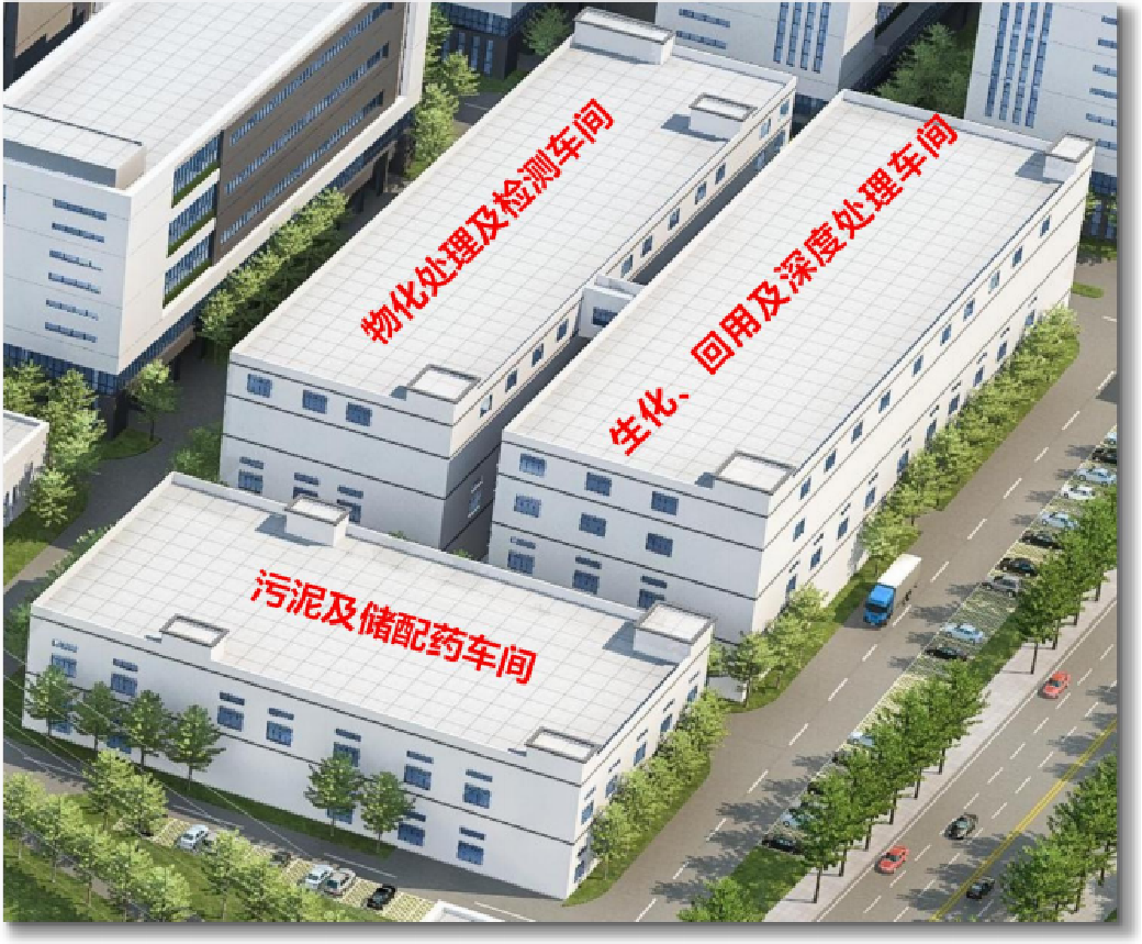 建设内容:园区建设17栋5层高标准厂房(首层为架空层),总建筑面积21万㎡;建设一座甲类危化仓、一座丙类危化仓;一栋2层危废暂存仓库;1栋6层楼办公楼和1栋地上5层值班楼;建设一座6000m³/d数字化立体式专业的废水处理中心(含物化处理车间、生化、回用及深度处理车间、污泥及储配药车间等)。