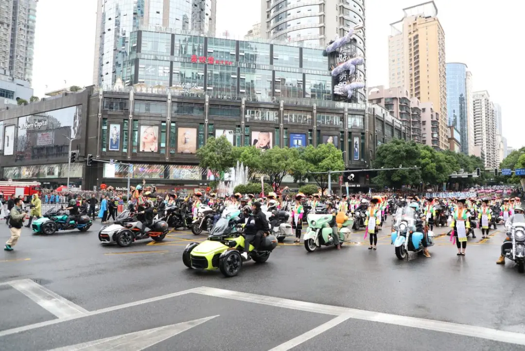 巡游现场,花溪方阵带来了苗族舞蹈《帽花裙飞》的展演,100辆炫酷机车、100个苗族舞者将花溪山地旅游文化和独有的高坡苗族文化及机车文化进行展示,将个性与多元文化完美呈现,在传统与现代的结合碰撞中,展现出一种既古老又年轻、既传统又创新的魅力。一路走来,热辣的花溪骑行方队引得群众不断兴奋欢呼。