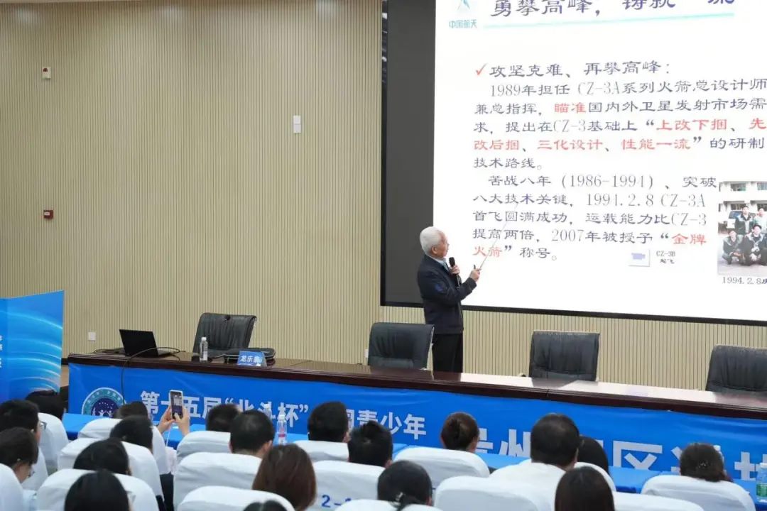 启动仪式上,贵州省科学技术协会副主席杨泳滨、第十五届“北斗杯”全国青少年空天科技体验与创新大赛组委会丘扬分别致辞。中国工程院院士龙乐豪做航天科普讲座。