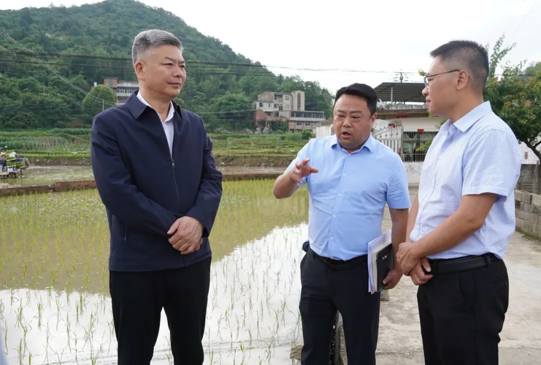 在青岩镇扬眉村,许俊松来到领办的示范责任田,实地察看水稻秧苗种植情况,了解责任田种植技术、农机具运用、农资供应、品种选择等情况,现场与大家交流农业生产经验。他指出,要把保障粮食安全摆在突出位置,严格落实各级领办责任,大力推广良种、良技、良法,充分调动种粮农民积极性,加强田间技术指导,扎实做好田间管理,切实发挥领办责任田示范作用,全力推动粮食增产、农业增效、农民增收。