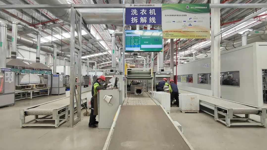 回收、拆解、破碎、装袋……走进贵州资源循环再利用静脉产业园(以下简称贵州静脉产业园)的废旧家电回收拆解区,机械设备轰隆运转,几位工作人员手脚麻利,将回收的旧家电放入拆解线。