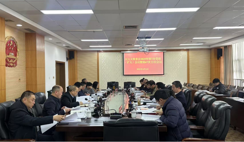 4月1日,区人大常委会党组书记、主任秦建军主持召开区人大常委会2025年第7次党组(扩大)会议暨第67次主任会议,传达学习习近平总书记近期重要讲话精神,以及中央、省、市、区有关精神,研究贯彻落实措施。