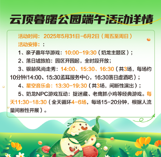 我们的节日·端午|端午趣玩云顶!高坡云顶暗夜暮曙公园“粽情奶龙·云顶奇遇嘉年华”邀您共度别样假期