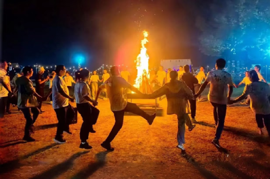 当夜幕降临,一天的行程接近尾声,还可以返程途中前往扰绕露营基地参加篝火晚会,为这趟旅程画上圆满句号。