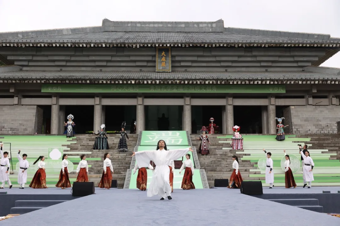 粽香端午,心学传习。5月31日,端午假期首日,贵阳孔学堂以“问心天地间”为主题,打造了一场融合文化传承与哲学思考的阳明文创秀,演绎屈原、王阳明两位传统人物跨时空对话,“多彩风”“天地心”“家国情”三幕文化秀为8000余名市民游客带来一场多元的文化漫游。