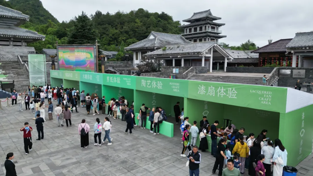 地戏演员韦明阳说:“杨家将精忠报国的故事一直被广为传颂,我们就是想把这种忠义精神、爱国之情继续传承下去,也把贵州的非遗地戏搬上舞台,让更多人看到。”除了早晚各一次的演出,现场还有八大非遗体验匠坊:漆扇、扎染、剪纸、木雕、茶修、绳编、陶艺、苗银……每一件作品都承载着匠人的温度,端午三天假期观众们都可以前往体验。