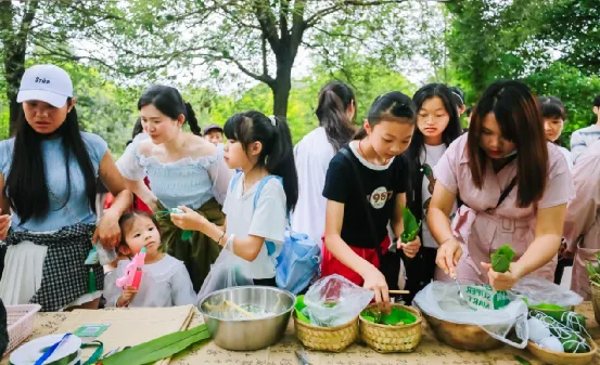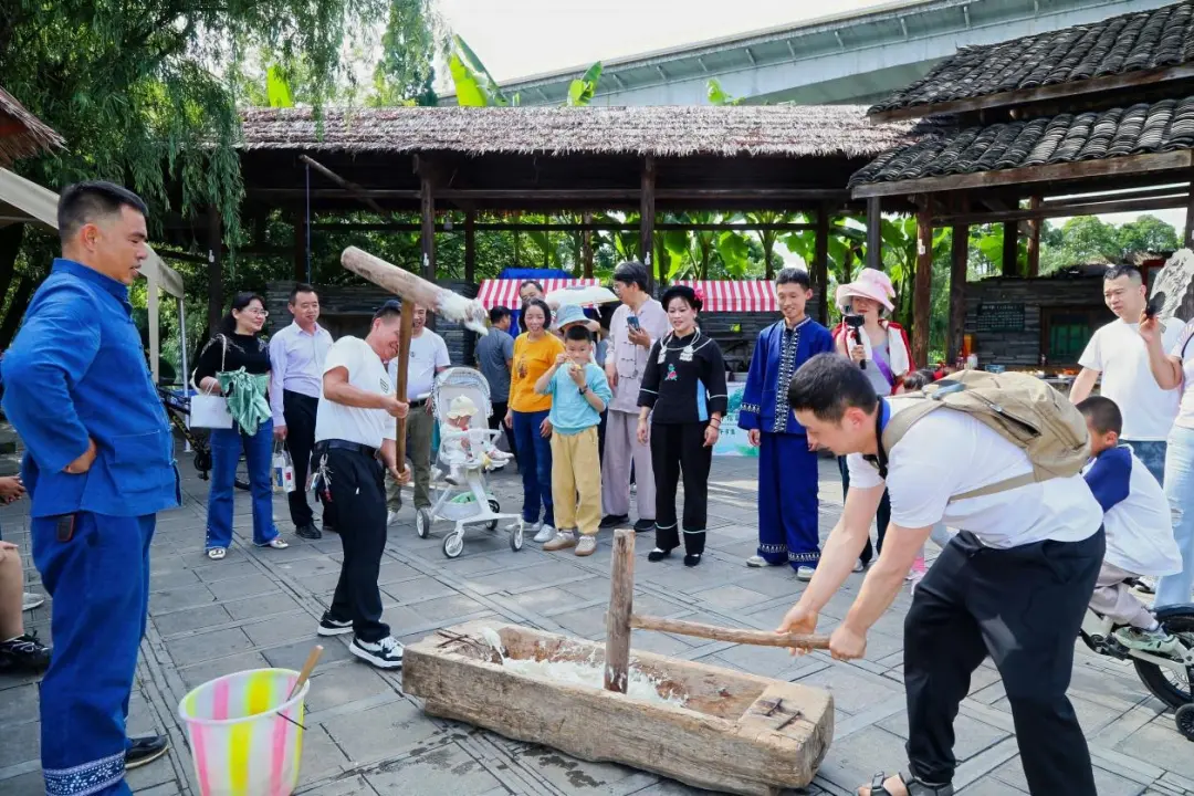 在风景如画的十里河滩农耕文化园,一场回归田园的端午农事体验正当时。游客们挥舞木槌,体验传统打糍粑的乐趣;亲手转动石磨,感受豆香四溢的豆腐制作过程;更在专业指导下,重温包粽子的指尖技艺。劳动的汗水与收获的喜悦交织,让端午记忆增添了一份泥土的芬芳与手作的温度。