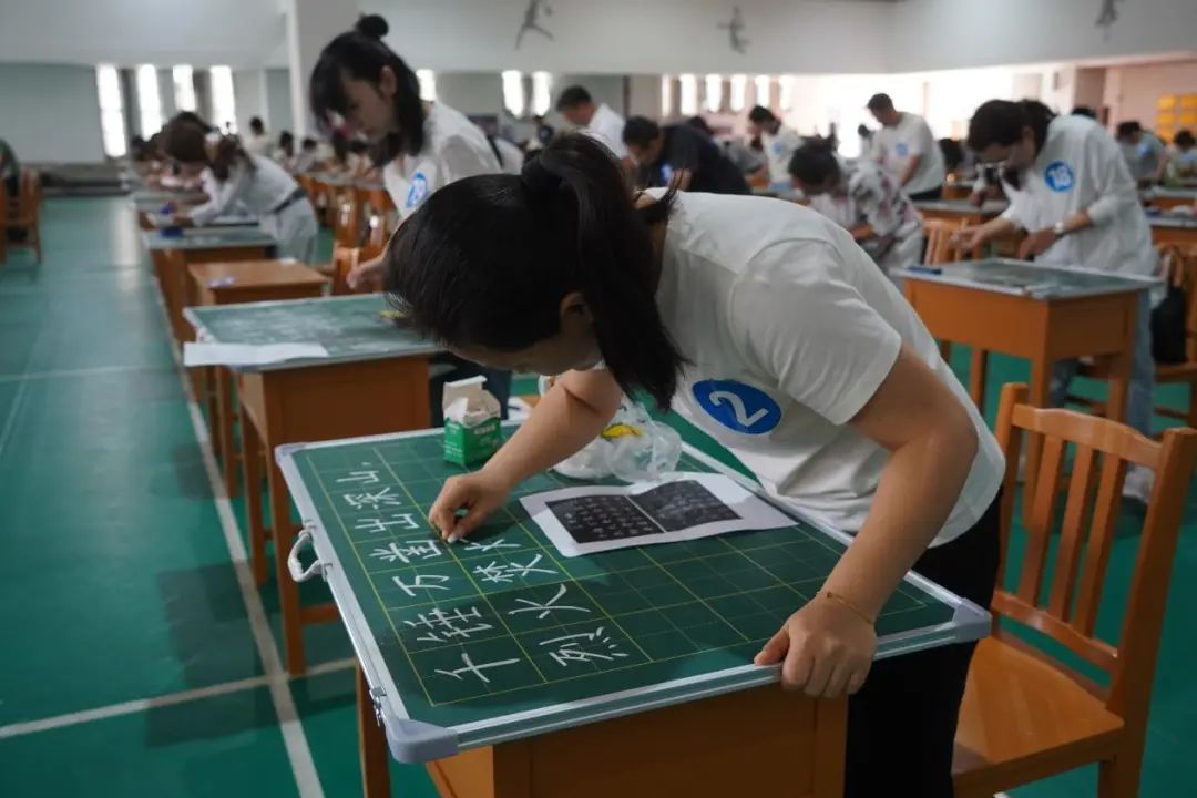 比赛现场气氛热烈,参赛教师各展所长。粉笔字赛区,教师们精心设计的板书布局美观大方;钢笔字区域,一幅幅刚劲有力的作品在选手笔下诞生;毛笔字比赛中,教师们挥毫泼墨,行云流水般的作品尽显书法功底;普通话测试采用智能测评系统,选手们声情并茂的朗诵展现了扎实的语言功底。