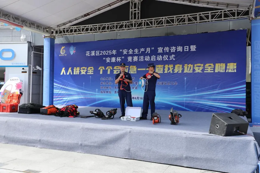 6月16日,由花溪区人民政府主办,花溪区安全生产委员会办公室和区总工会承办的2025年“安全生产月”宣传咨询日暨“安康杯”竞赛活动启动仪式在花溪区明珠里生活广场举行。