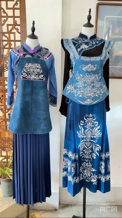 枫香染布料做成的传统民族服饰(央广网记者 杨贇 摄)