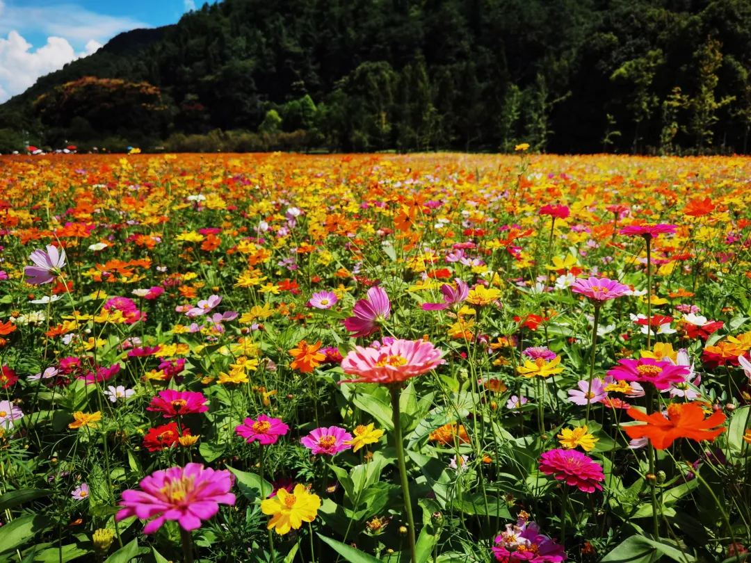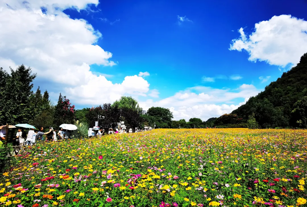 日前,贵阳市花溪国家城市湿地公园十里河滩的秋英、百日菊竞相绽放、争奇斗艳,吸引了众多游客前往打卡。