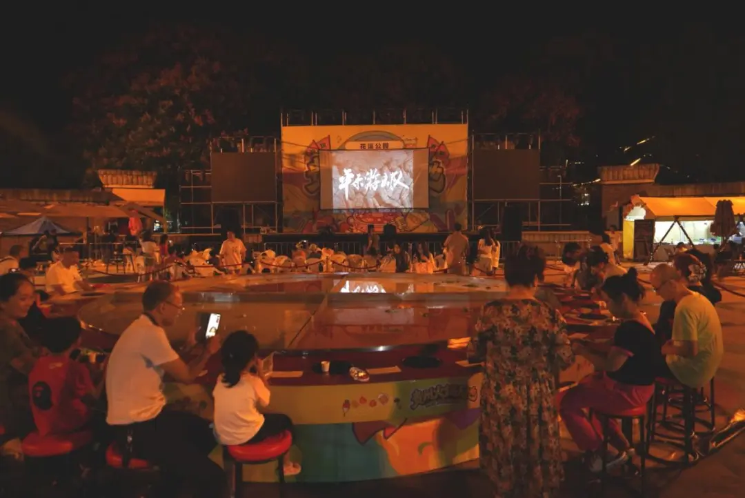 一边是美食烟火,一边是银幕烽火!花溪的夜晚够味!