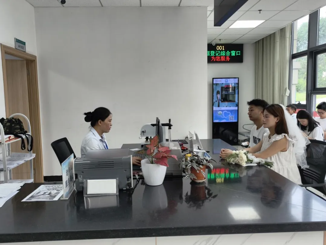 8月29日,正值农历七月初七“中国情人节”,花溪区、经开区政务服务大厅婚姻登记窗口推出“为爱加班”特别服务,满足新人们“情定七夕”的美好愿望,让传统佳节的浪漫在政务大厅绽放新韵。