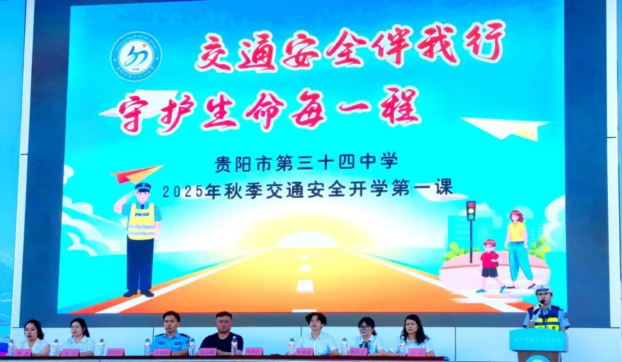 贵阳市第三十四中学、花溪区第一实验学校特邀法治副校长和交通警察进行法治与交通安全宣传教育。