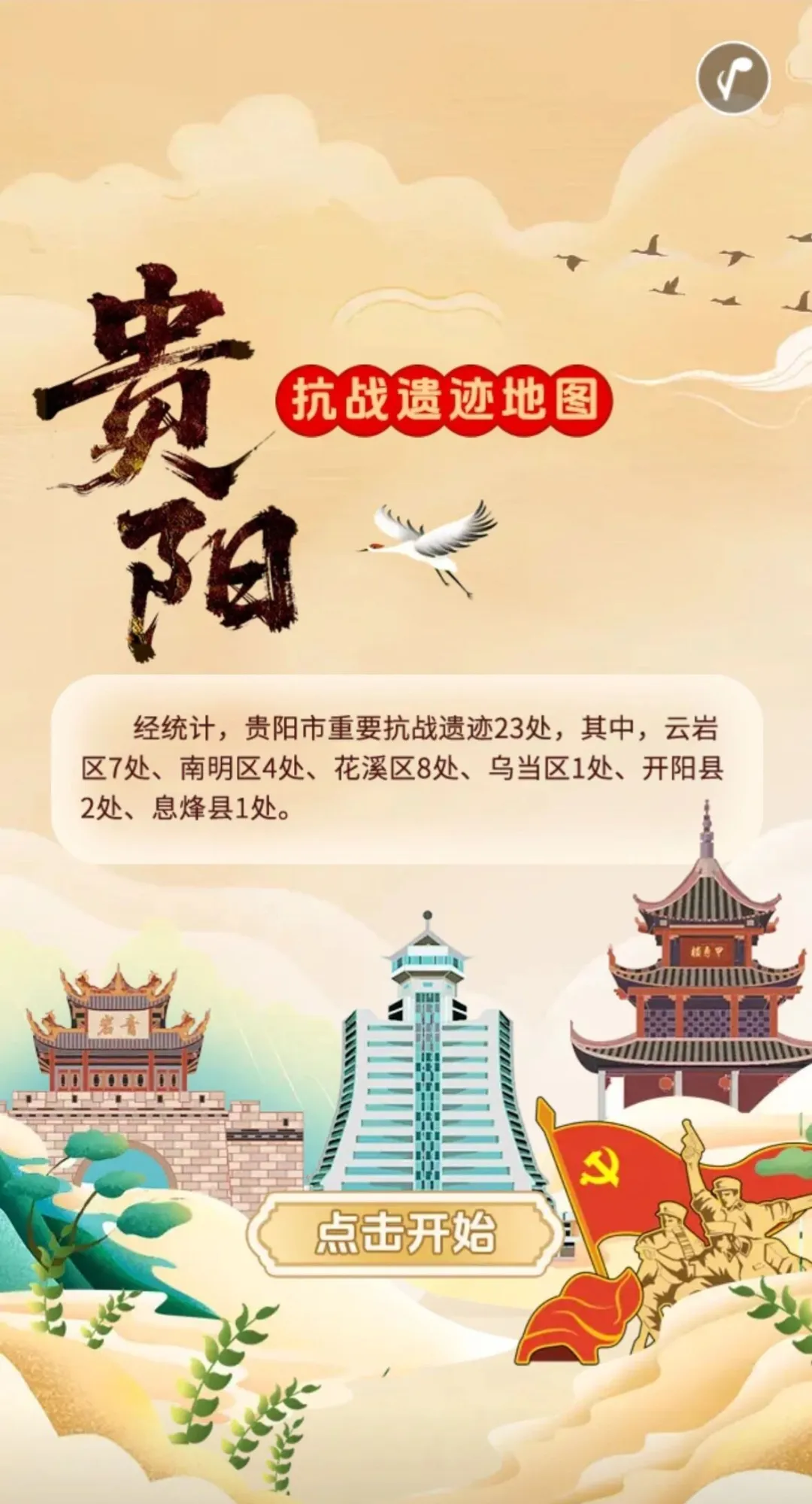 为纪念中国人民抗日战争暨世界反法西斯战争胜利80周年,贵阳广播电视台“知知贵阳”重磅推出“贵阳抗战遗迹地图”,汇聚23处承载抗战记忆的珍贵地标,通过可视化的H5页面,打造可互动的红色记忆体验新窗口。