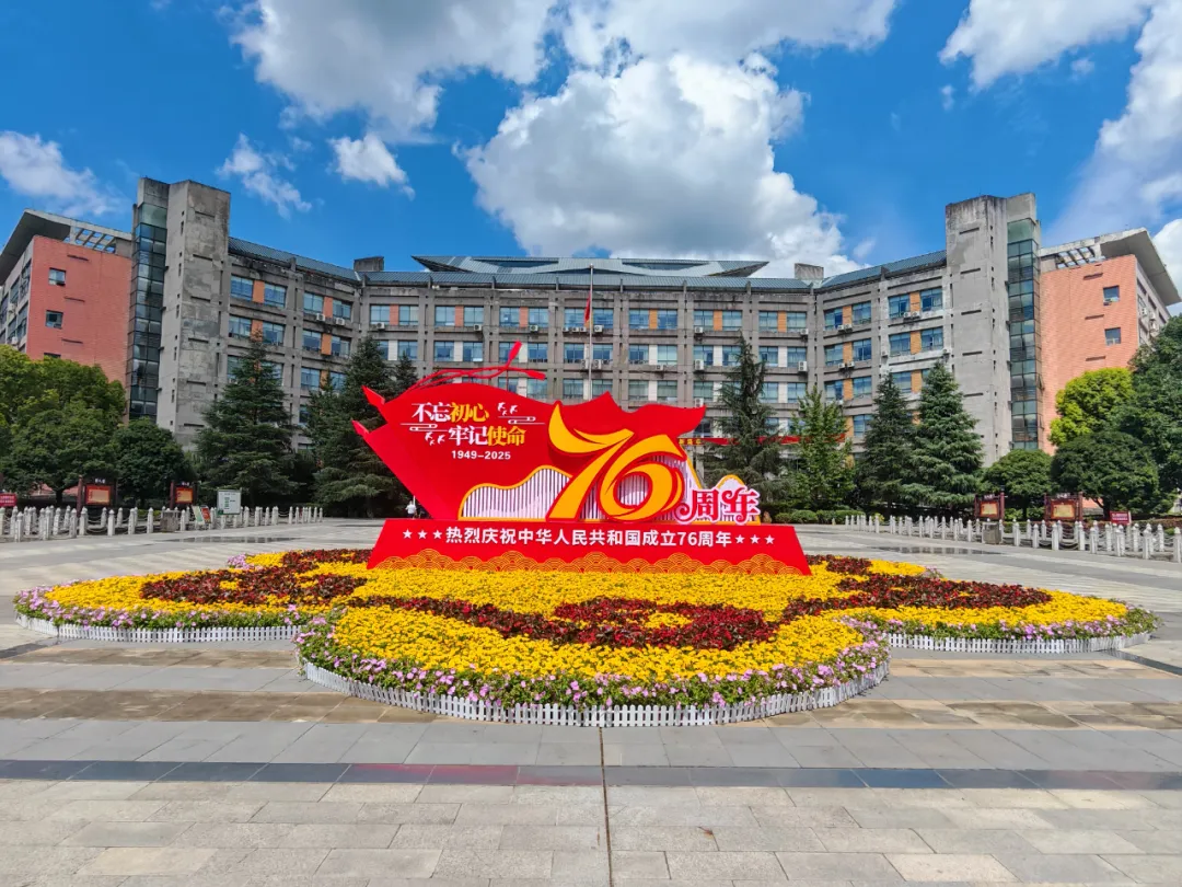 横跨花溪河的大桥上,红旗在秋风轻拂下猎猎作响,与碧波荡漾的河水相映生辉。在区政府八一广场前,缤纷花卉簇拥着“热烈庆祝中华人民共和国成立76周年”的醒目标语,传递出花溪人民对祖国的无限深情。