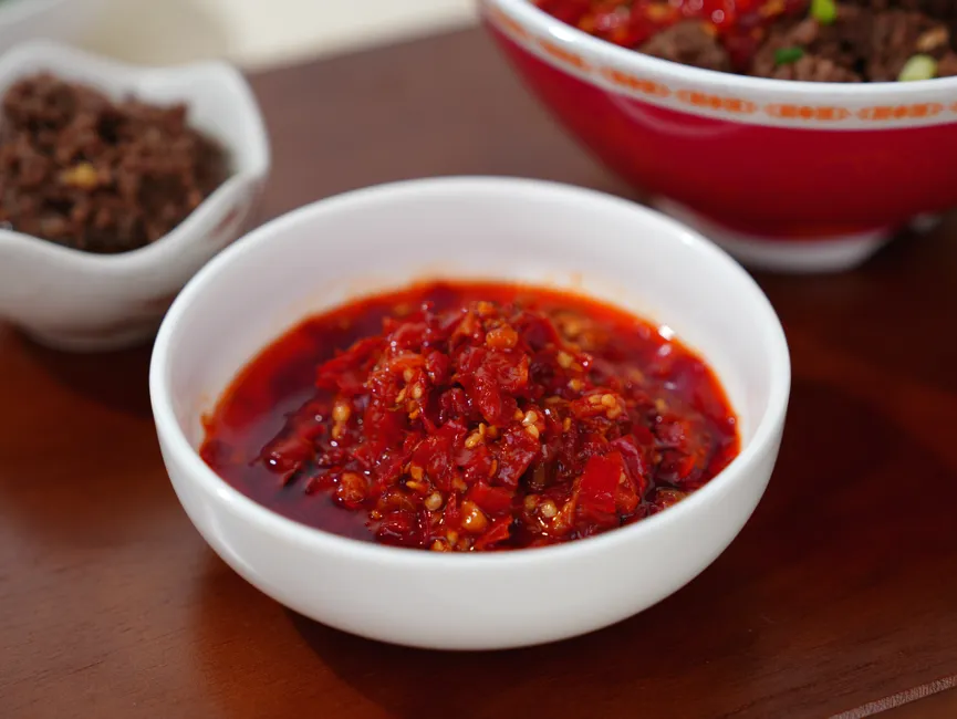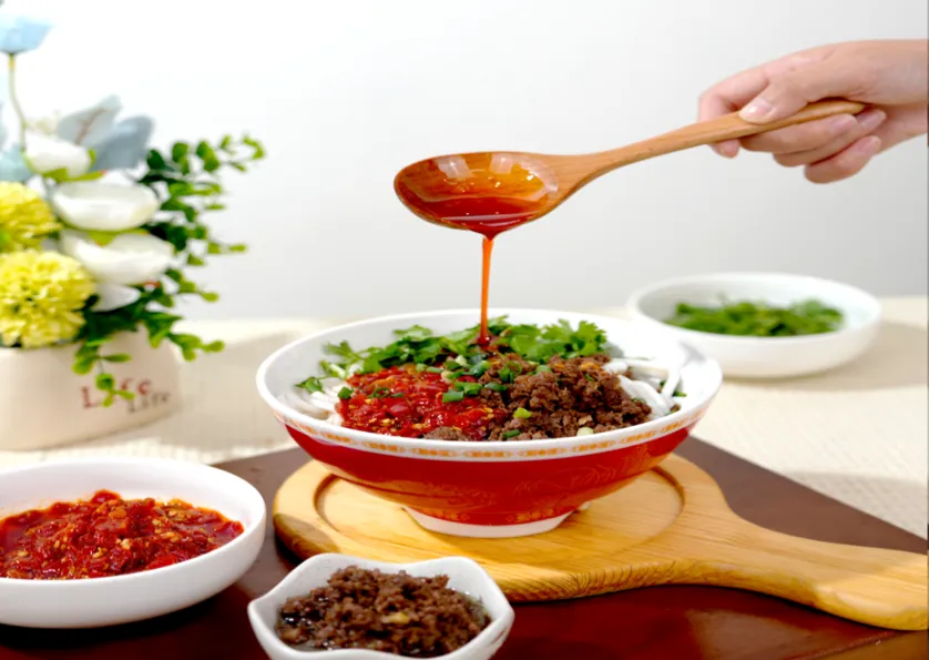 “糟辣椒牛肉沫干拌粉”巧妙地将花溪牛肉粉烹饪技艺与特制花溪糟辣椒激情碰撞,在猛火快炒中激发出辣椒的酵香与牛肉的脂香,形成一层色泽红亮、香气扑鼻的浇头。均匀拌入爽滑米粉中,继而贵州优质牛肉与花溪特有辣椒的交织,每一根米粉都裹挟着糟辣椒的鲜酸微辣与牛肉末的醇厚焦香,入口瞬间,层次丰富的味觉体验瞬间引爆,