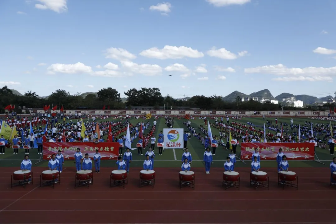 在赛事开幕当天,各校师生的精彩表演高潮迭起,令人目不暇接。贵阳市第三十四中学的擂鼓表演气势磅礴,瞬间点燃全场氛围;贵州省模型运动协会与贵州飞翼未来科技有限公司联合呈现的科技表演,充分展现了科技创新的无限魅力;花溪区青岩中心完小的舞龙表演灵动矫健,传承了中华优秀传统文化;花溪区幼儿园(美的园区)的团体操表演童真满满,花溪区文旅城第一学校篮球操表演动感十足,花溪区第三实验学校“四段锦”表演刚柔并济,花溪区焜瀚学校武术表演虎虎生风。这些精彩表演集中呈现了花溪学子在体育、艺术、科技领域的丰硕成果。